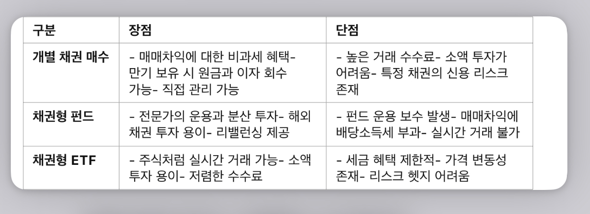 2. 채권 투자 방법별 장단점 비교